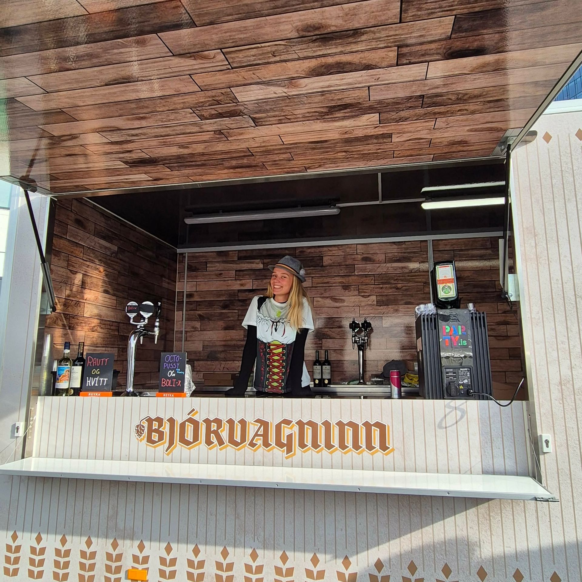 Búbblubíllinn er nýr og heillandi sjarmör á götum Reykjavíkurborgar – Hann var upprunalega venjulegur ítalskur vespubíll af klassísku tegundinni Piaggio Ape en er nú kominn með fullkomið dælukerfi, svo hægt er að bjóða upp á ííískalt og ljúffengt freyðivín og bjór úr kútum.