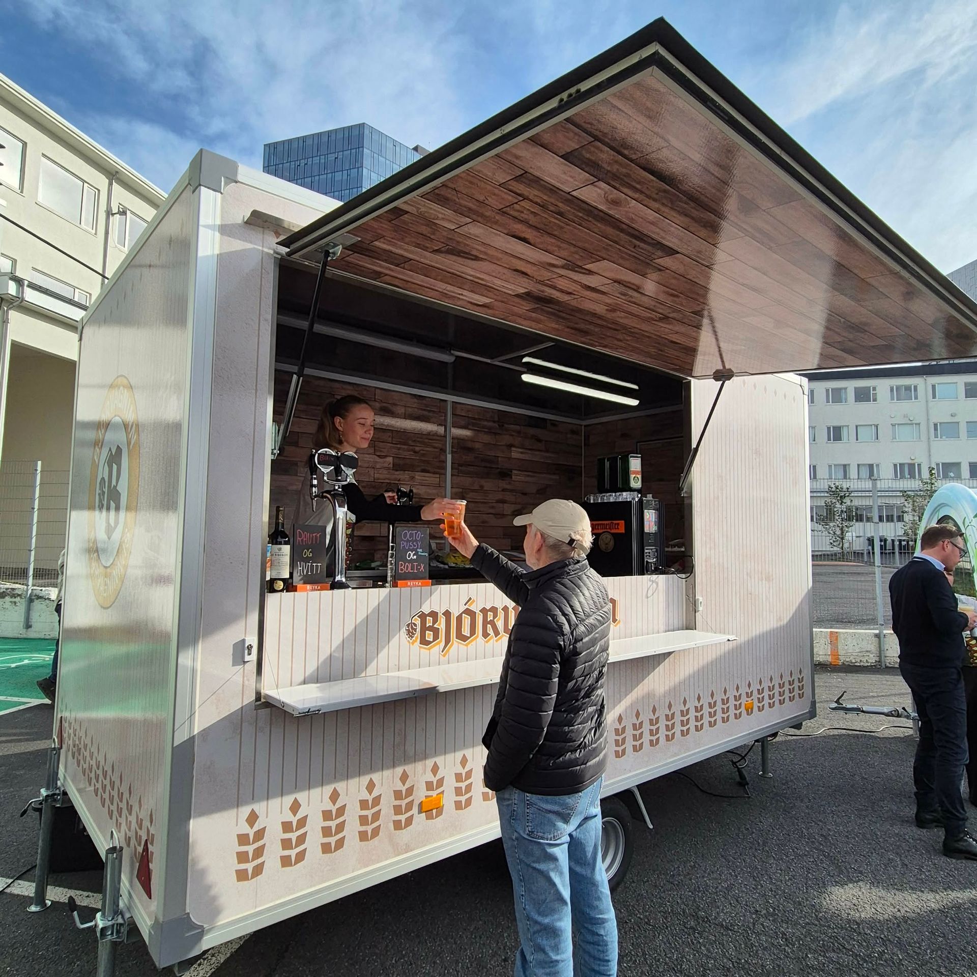 Búbblubíllinn er elegant og skemmtileg lausn fyrir viðburði. Engir klakar, engar flöskur eða dósir, ekkert vesen. Bara svalandi bjór ... já og auðvitað fallegar búbblur í háum kampavínsglösum!